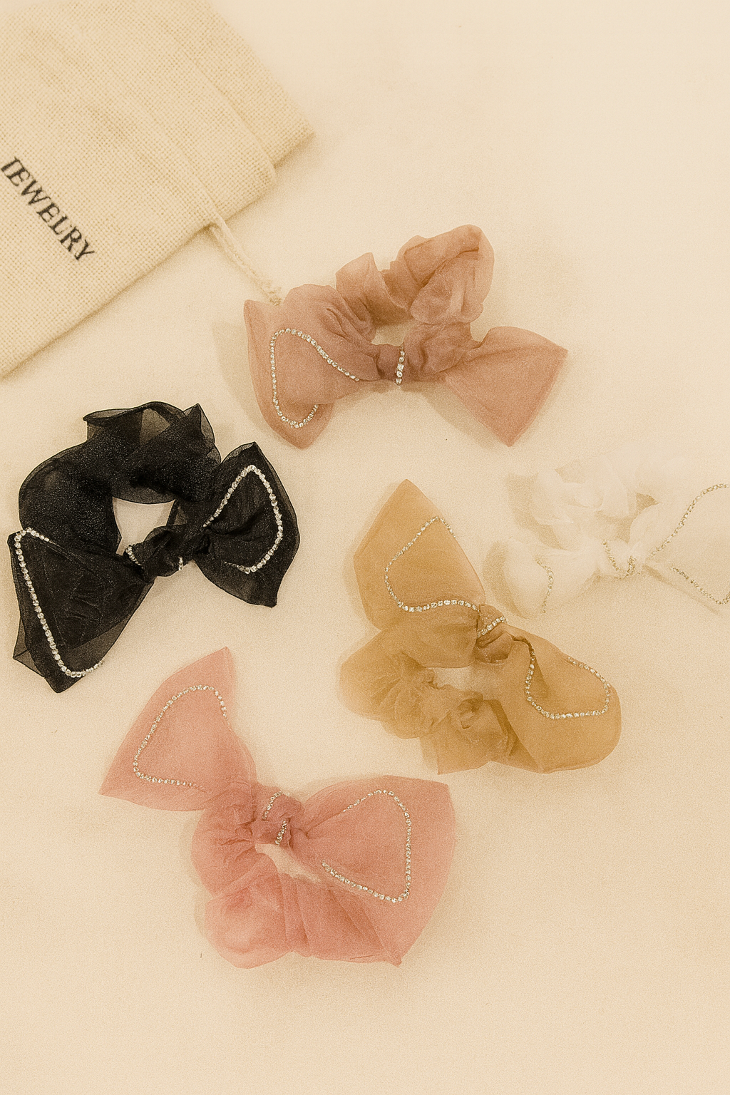 Shimmer bow stone scrunchies